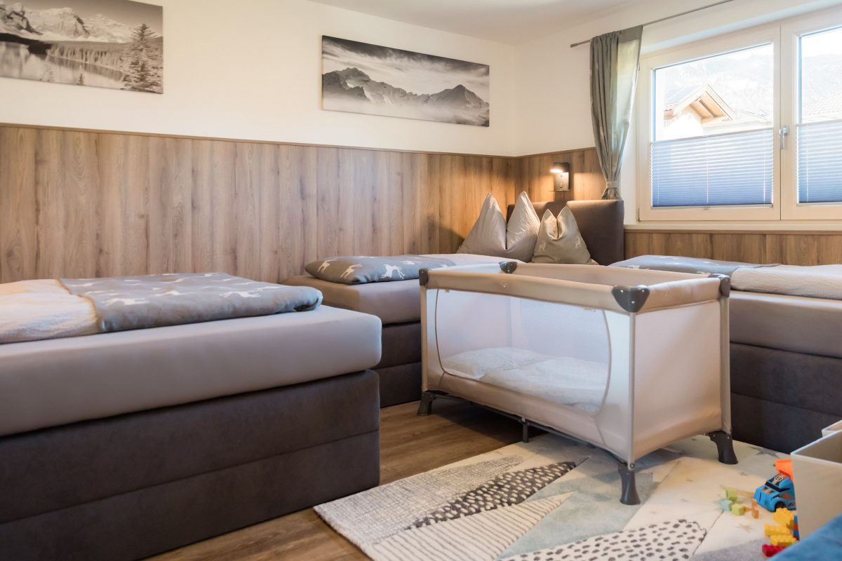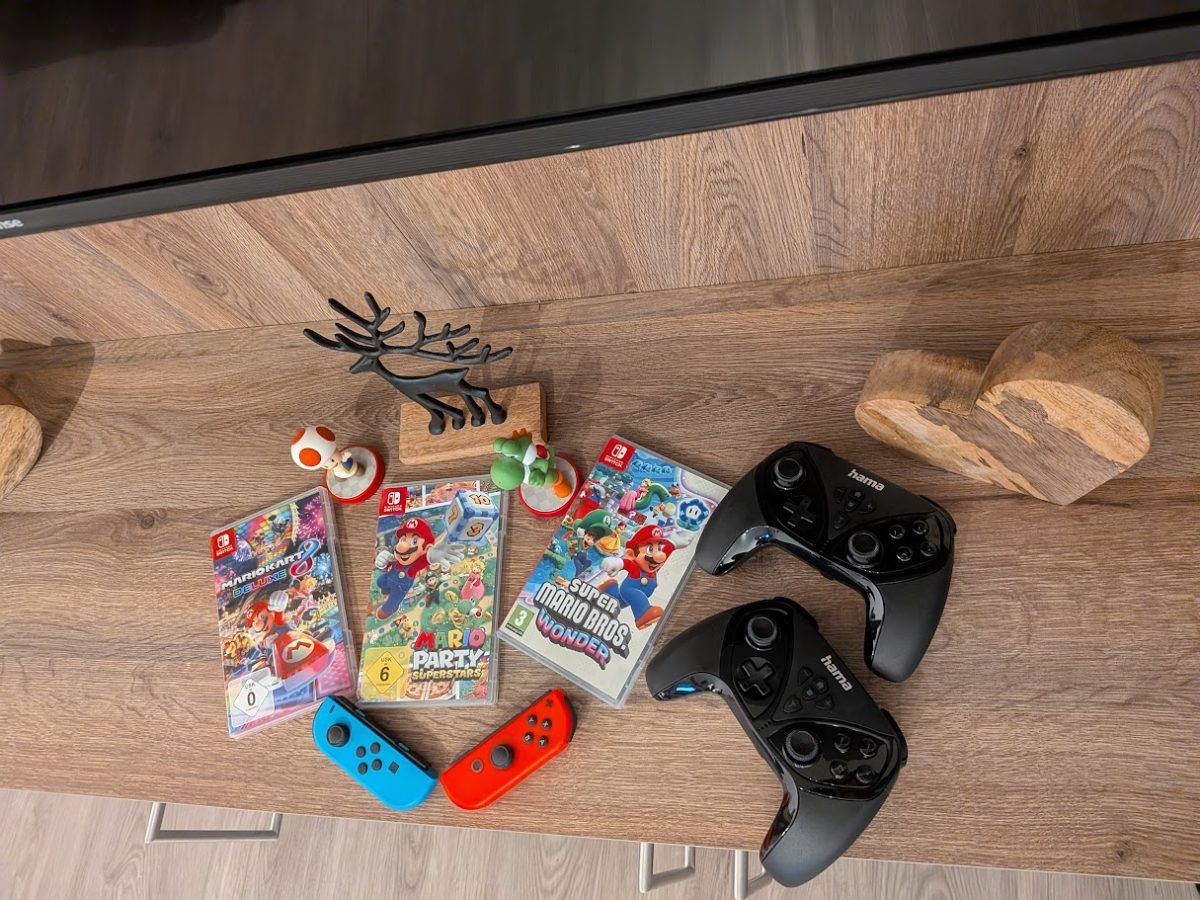 Im Wohnzimmer begrüßen Sie eine einladende und große Schlafcouch (Schlafbereich 180×200), ein 60″ Flatscreen sowie eine Nintendo Switch.